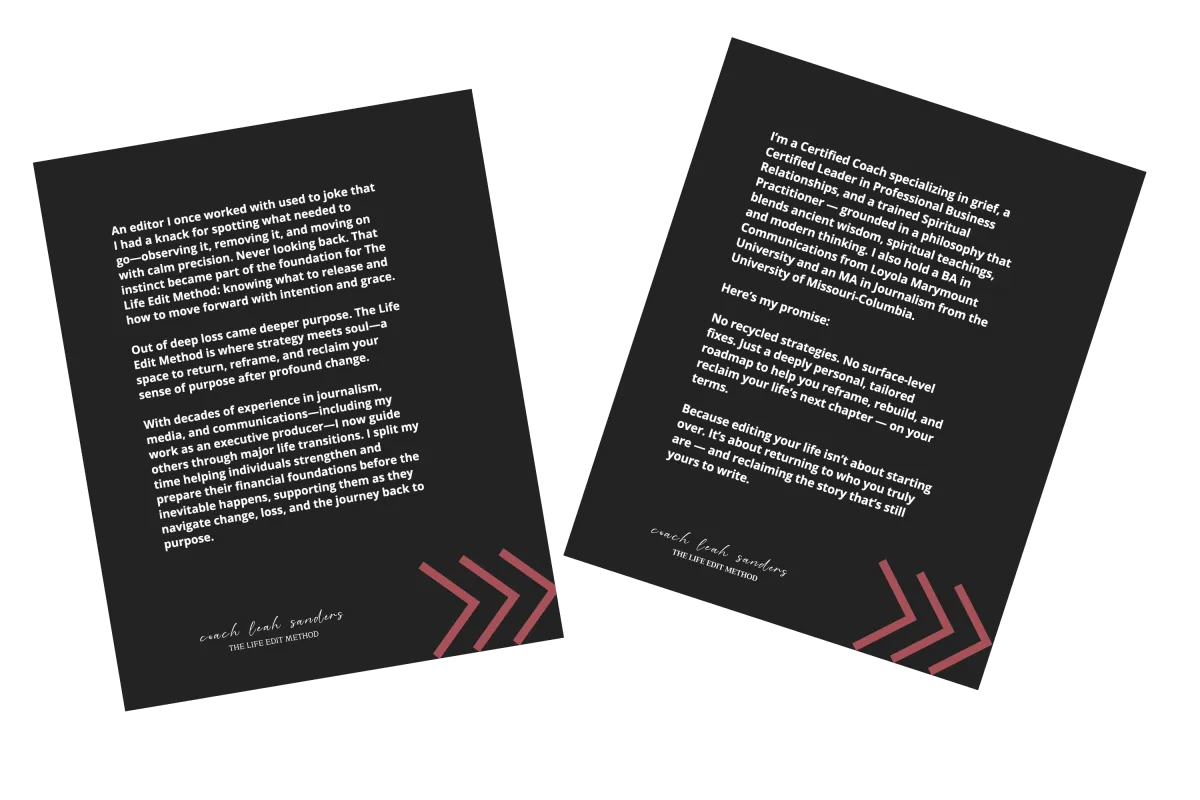 No. The Life Edit Method is a coaching framework, not therapy. I am not a licensed therapist. If during our sessions it appears that therapeutic support would be helpful, I will encourage and guide you toward appropriate resources while continuing to support you through coaching.